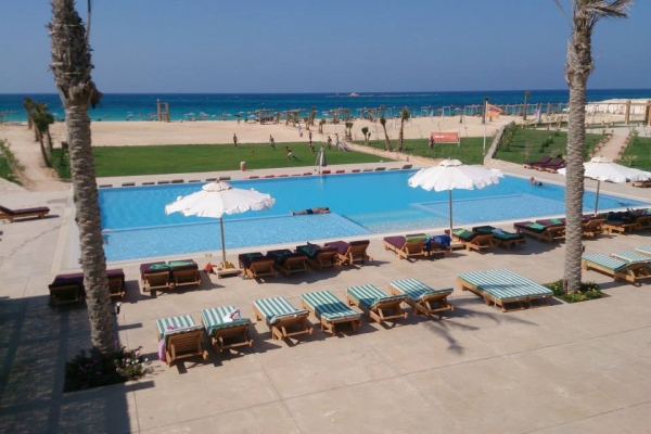 Located on the Mediterranean beach in Marsa Matrouh, Caesar Bay Resort offers outdoor and indoor pools in addition to sweeping playgrounds, restaurants and a grand spa. Watersports activities are also available. The elegant rooms feature Riviera décor with calm pastel colours. Each boasts a balcony with garden or sea view. Standard features include free WiFi, air-conditioning, flat-screen TV and minibar. A sofa and a safety deposit box are also included. This 5-star resort has an entertainment programme that includes evening shows, live cooking stations and a bar. Young guests have kid’s club and playground. Hammam experience, massage treatments and sauna can be enjoyed at the spa at a surcharge. Snorkeling gear can be rented. Fitness centre is available, as well as a free private parking on-site.