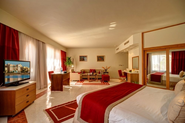 Occupying a beach front location, Club Paradisio is situated in El Gouna just minutes away from the 18 hole golf course Club House. It offers 3 swimming pools, a fitness centre and a retail shopping arcade. All rooms at Club Paradisio feature a balcony overlooking the pool, sea and lush gardens. Each one offers a flat-screen TV, a minibar and a telephone. The suite includes a separate living room and a dining area. There is a wide choice of culinary delights at Club Paradisio such as Marco Polo Restaurant that serves Egyptian Cuisine to Morgan that offers sea food. Cocktails and mocktails are served at the pool and main lobby bar. Club Paradiso offers an impressive select ion of sports activities such snorkeling, diving, beach volley ball and tennis. Diving lessons are also available through the club academies. Downtown ElGouna is 1 km from Club Paradisio. Hurghada’s International Airport is 20 km away. Free private parking is possible on site.