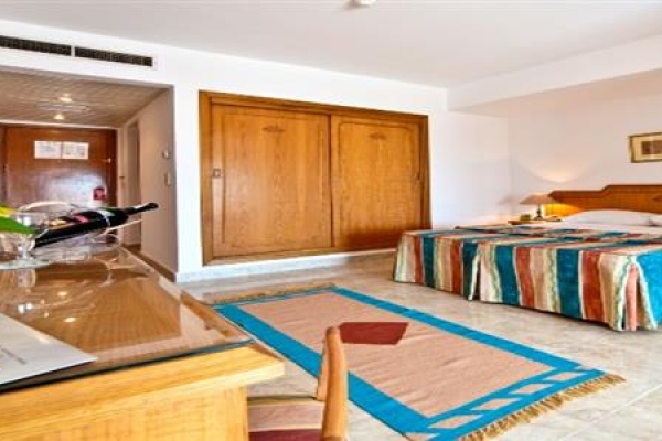 The MinaMark Beach Resort is located by the seaside, in the city of Hurghada. It features 24 hours all inclusive meals, bright and modern rooms, an outdoor swimming pool, a private beach area, and several restaurants. The rooms at MinaMark are decorated with wooden furniture and tiled floors. Each air-conditioned unit has a satellite TV, a minibar, and some of them have sea or garden views. You can relax by the pool or head to the private beach to swim in the Red Sea waters. You can also enjoy a massage at the health club and spa while the children are having fun in the playground. The MinaMark Beach Resort offers a wide select ion of food choices, including 2 main restaurants with theme variations on their menus each day. Guests will also find an à-la-carte Italian and a seafood restaurant. Hurghada International Airport is 8 km away, and the port is just 1 km from the hotel. The reception can also arrange different activities for the guests, such as desert safaris, trips to Cairo or sea cruising.