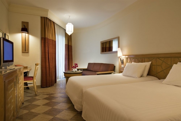 Situated in Sharm El-Sheikh, this hotel is less than 200 metres from Naama Bay. It has a private beach, 5 swimming pools, and offers air-conditioned rooms with satellite TV. Rooms at the Novotel Sharm El-Sheikh have tiled floors and elegant furnishings. They come equipped with a minibar, as well as tea and coffee making facilities. Some rooms feature balconies with panoramic views. The Novotel has 3 restaurants that serve a variety of regional and international cuisine. Al Dente offers Italian fare and views of the Red Sea. The Bedu Bar provides live entertainment. Guests can enjoy a relaxing massage, or visit the fitness centre. The hotel also has a games room with table tennis, and a children’s playground. Novotel Sharm El-Sheikh is less than 10 km from Sharm el-Sheikh International Airport. The hotel offers 24-hour front desk service, and free private on-site parking.