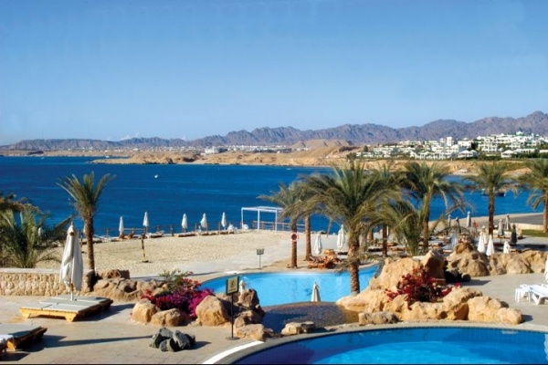 This stunning resort occupies an equally stunning setting with panoramic views across the bay. Designed in traditional Moorish style with an impressive interior, it exudes elegance inside and out. As you relax by one of five swimming pools soak up the luxurious ambience, before wandering down to the golden beach . The first class service is matched by an impressive choice of facilities, including a select ion of fine restaurants, activities and well-appointed rooms. Located in El Pasha Bay, just 10 km from Sharm el Sheikh airport and 7 km from Naama Bay, which can be reached by free shuttle bus. Transfer time: 20 minutes.
