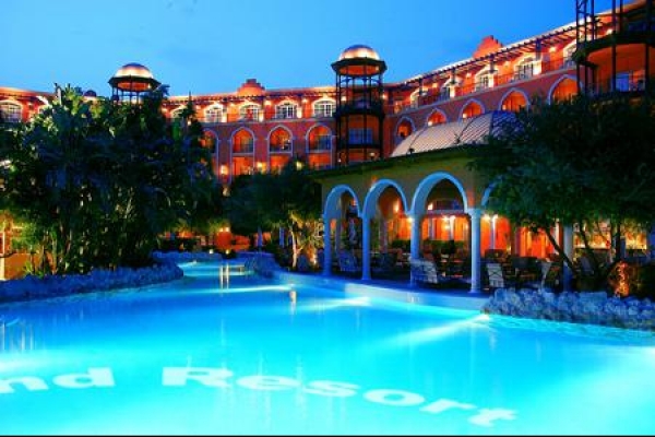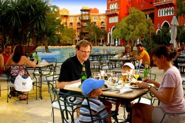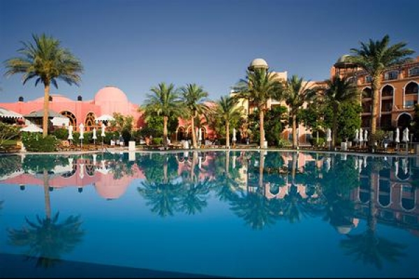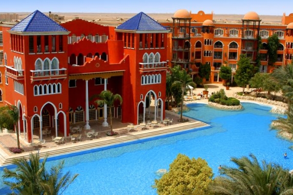 Just 6 miles from the center of Hurghada, Grand Resort offers rooms with private balcony overlooking the outdoor pool. The hotel features 3 outdoor pools and 8 restaurants. The Grand Resort has modern air conditioned rooms with balconies or a terrace. All rooms have wooden furniture and tiled floors. They also have satellite TVs and a minibar. Guests will find a variety of breakfast and dinner buffets in the 3 main restaurants. The Grand Resort has also 5 restaurants offering varied dining menus featuring Mediterranean and Egyptian dishes. The Oriental restaurant offers daily belly dance show. Grand Resort’s pool area offers live music and entertainment. The hotel is just 500 ft from the beach, where guests have access to a fitness center, tennis courts and water sports. Hurghada International Airport is only 2 miles away, and the hotel offers free public parking on site. Guests can reach the center of Hurghada via a daily free bus transportation.